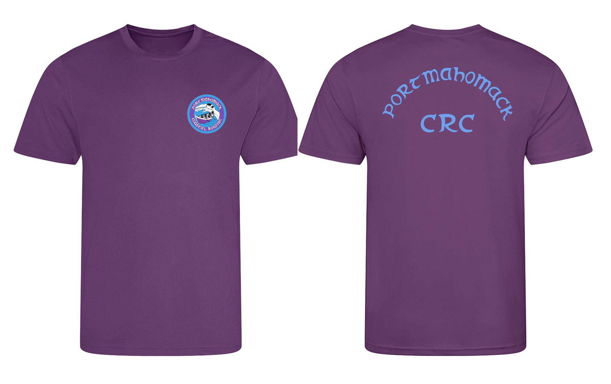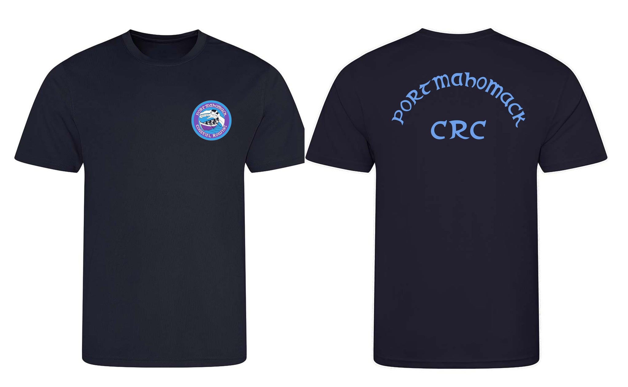 This t-shirt comes in either navy or magenta magic with the club logo printed on the front chest and Portmahomack CRC on the back printed in bright blue